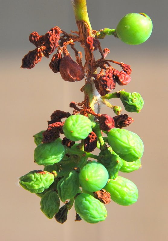 As mentioned in an earlier post, our Chardonnay bloomed during a long, wet spell, and thus the pollination of the fruit was greatly impacted. In the images below, you can appreciate the value of sunlight at a critical time in fruit development. And we are so grateful to the "weather gods" that they spared us our beloved star, our Pinot Noir.